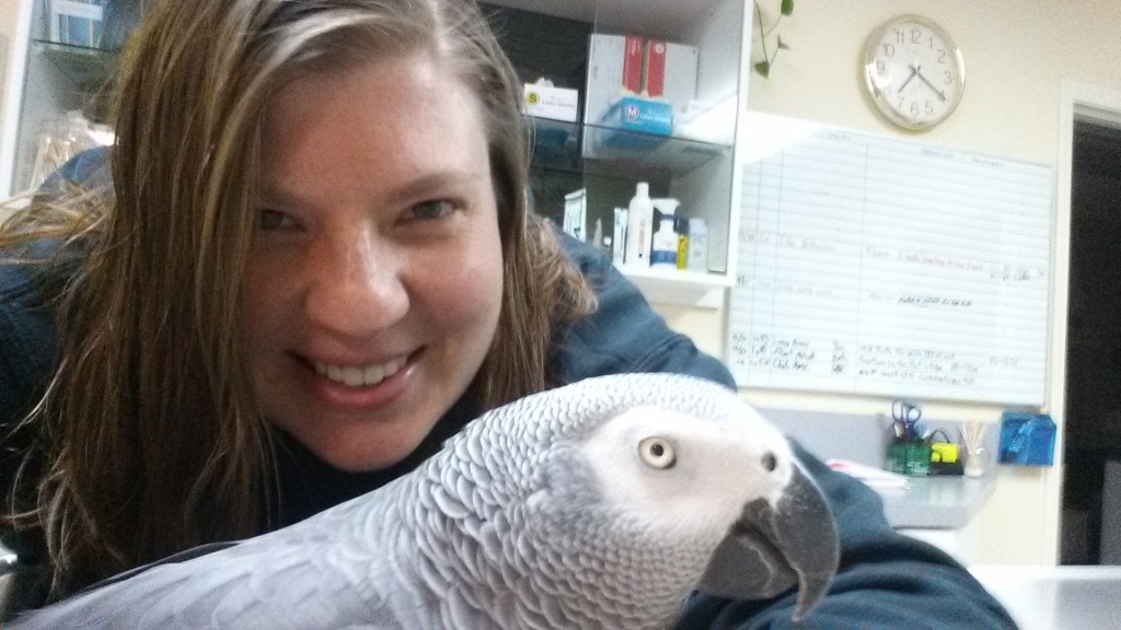 As it turned out, I found a position at a veterinary office that specialized and treated ONLY domestic birds! The next 8 years of my life were all about domesticated Avian medicine. I loved all of the birds, their unique personalities, and the special bond they had with their owner. We practiced medicine on a wide range of feathered friends including Peacocks, Chickens, Turkeys, Pigeons and even Hawks occasionally. When I started my job at the veterinary clinic, I only had 2 cats; but along the way I adopted an adorable Timneh African Grey Parrot named “Rhoda-Doo”, followed by a feisty African Grey Parrot named “Momo”. Sadly, I lost Rhoda-Doo in October of 2014, but Momo is still as feisty as ever at the tender age of 28!
